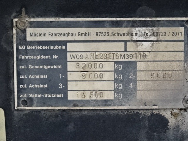- Auflieger Möslein, Aluminium Wanne, FIN W09AMP132TSM39110, Gesamtlast 32000kg, schlechter Zustand, Keine FZ Dokumente vorhanden